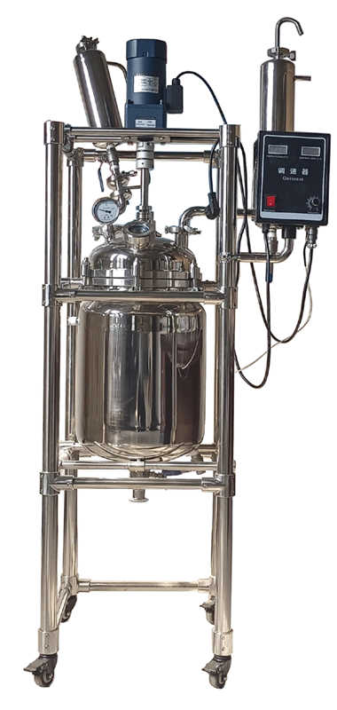 雙層不銹鋼反應釜為雙層不銹鋼設計,內層放入反應溶媒可做攪拌反應,夾層通上不同的冷熱源(冷凍液,熱水或熱油)做循環加熱或冷卻反應。在設定恒溫條件下